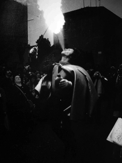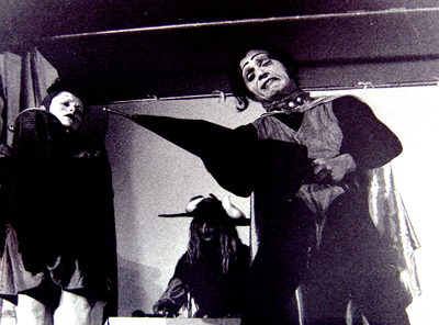 Growing up surrounded by a daily Commedia dell’Arte, I learned to use traditional masks then moved to street/circus numbers as a clown, strong man and spitfire to arrive at more introspective and darker experimental solo and group performance. My inspirations were and remain (among others) Julian Beck, Jerzy Grotowsky, Tadeusz Kantor, Els Comediantes, Fellini ,Pasolini, Jodorowsky. Now I’m more interested in multimedia types of work that wont exclude my personal presence as a performer, if the opportunity will arise.